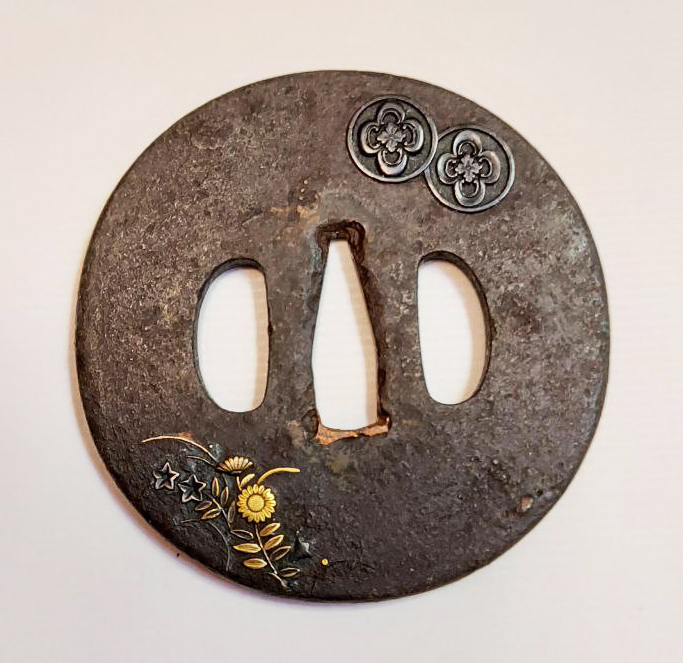 На гарді (цубі) розміщено родовий символ мон мокко (у вигляді квітки дині): два зображення на верхньому та одне на нижньому боці. Зазначений мон потрапив до Японії з Китаю наприкінці VI ст. н.е. та у різний час використовувався понад 150-ма вельможними родинами країни.