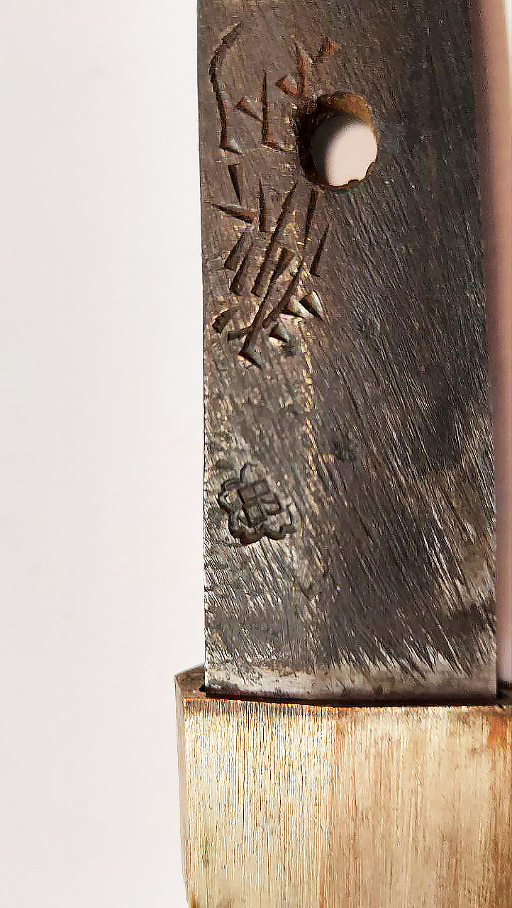 На запорній муфті клинка (鎺, хабакі) гравійовано символ, подібний до японського ієрогліфа 久 [hisashii].