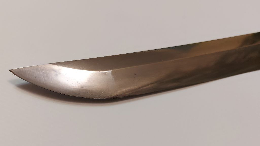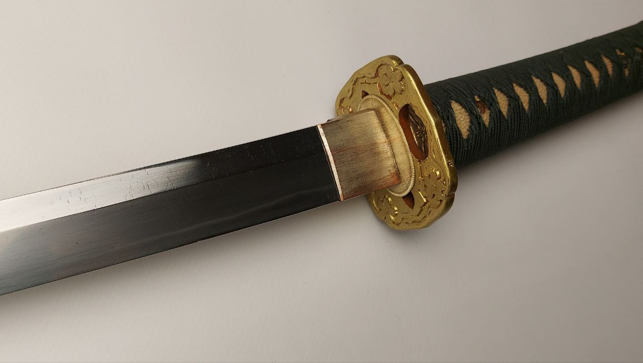 індивідуальне замовлення. У конструкції встановлено клинок традиційної роботи, виготовлений у 1930-1940-х рр. майстром Канетомо Танігава (谷川兼友), – незареєстрованим ковалем з міста Секі.