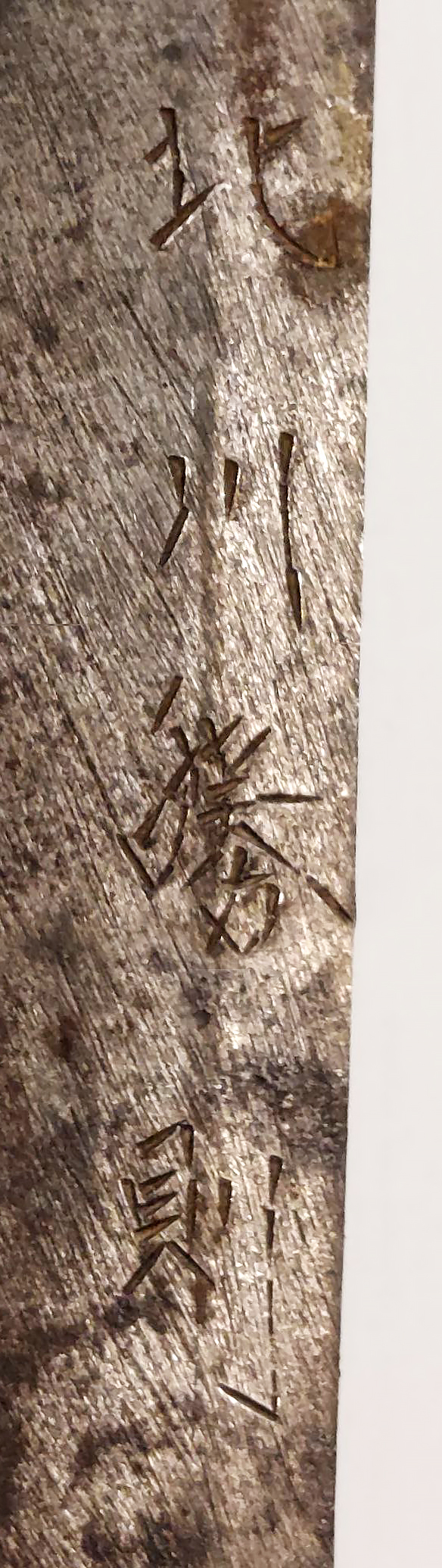 Виробник. На клинку гравійовано ім’я майстра: Кітаґава Катсунорі (北川勝則 [Kitagawa Katsunori]). Справжнє ім’я коваля – Кітаґава Катсуічі (北川 勝一 [Kitagawa Katsuichi]), він згадується у списку «Seki Tanrensho», надрукованому 1939 р., де перелічені зареєстровані державою ковалі, які працювали для арсеналу міста Секі – традиційного ковальського центру провінції Міно (префектури Гіфу). Під час Другої світової війни у самому лише Секі працювало понад 200 клинкових майстрів, щоб забезпечити армію якісними мечами.