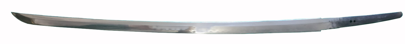 Морфологія клинка. Клинок широкий, слабовигнутий. Форма клинка – сіногідзукурі, або хондзукурі (основна, з повздовжнім ребром), вигин рівномірний – торідзорі, форма бойового кінця – тю-кіссакі (середня вершина), доли (хі) – відсутні, обух (муне) – йорі («гребінь даху»). Форма хвостовика (накаго) – убу (звичайний); закінчення хвостовика – ха-агарі курідзірі («контур каштану з підйомом до леза»). Хвостовик має 2 ана (отвора) для мекугі (запорного клину). Насічка на хвостовику (ясурі-ме) – сака-така-но-ха (перевернуте перо сокола).