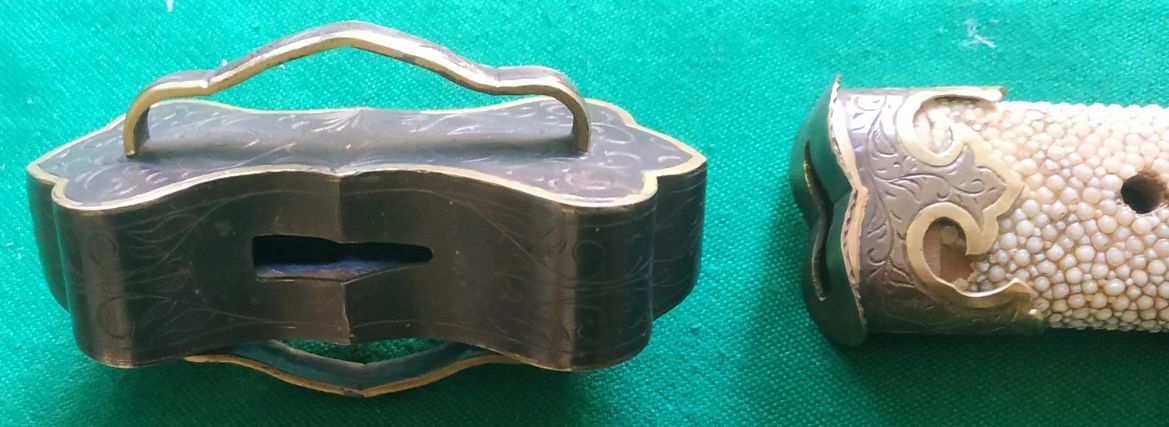 Овальна муфта руків’я (縁, фучі ) латунна, має вигляд широкого фігурного обруча, прикрашеного рослинним орнаментом.