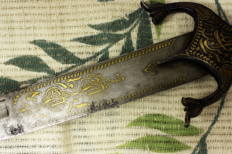 Слід зауважити, що на клинку немає залишків старішої символіки (яку зазвичай доповнювали новою). Мова написів – арабська, що в поєднанні з морфологією та матеріалом все більше переконує в арабському чи сирійському походженні клинка.